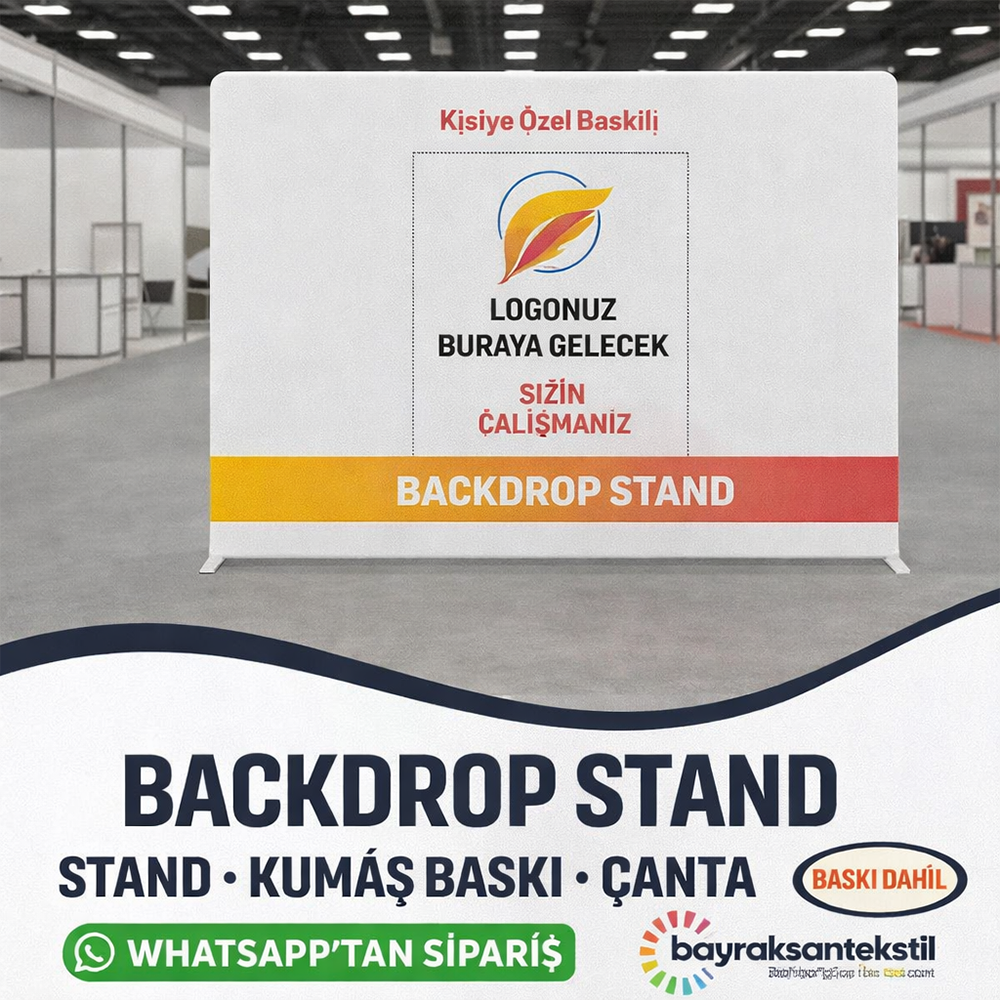 Backdrop stand ; fuar, etkinlik, lansman, mağaza içi tanıtım ve fotoğraf çekim alanlarında kullanılan, kumaş baskılı portatif arka fon standı çözümüdür. Modüler alüminyum profil gövdesi sayesinde hızlı kurulur, kumaş baskısı kolayca takılıp çıkarılabilir. Bu sayfadaki ürün; 300x230 cm kumaş backdrop stand ölçüsünde, iç mekan kullanımına uygun bir modeldir.
