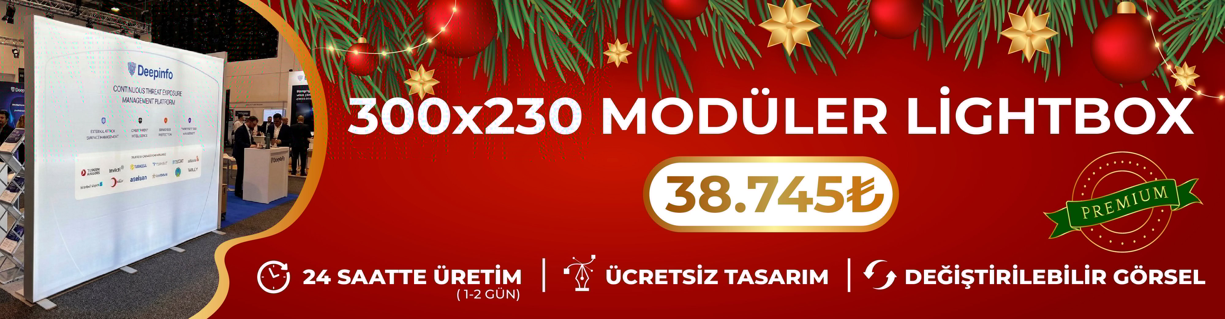 Firmamız, ihtiyacınıza uygun olarak 100x230 cm, 200x230 cm, 300x230 cm ve 400x230 cm ölçülerinde modüler lightbox stand üretimi yapmaktadır. Tüm ürünlerimiz yüksek kaliteli alüminyum profiller, silikon fitilli kumaş baskı ve enerji tasarruflu LED ışık sistemi ile üretilmektedir. Işığın homojen şekilde dağılması sayesinde görselleriniz her ortamda canlı ve net görünür.